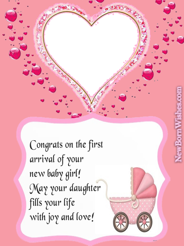 Congrats the First Baby Arrival Wish With Picture. Beautiful wish card for mom on her baby girl arrival with picture. Free Download and Share.