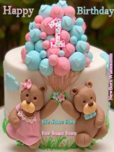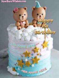 Blue Pink Marshmallow Cake For Twins Baby With Name