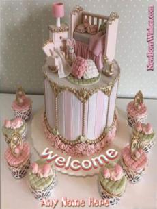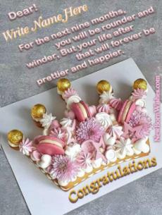 First Baby Congratulations Wish Quotes Crown Cake Card With Name