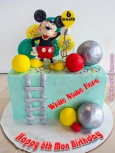 Mickey mouse Half Cake For Sixth Month Baby Cake With Name